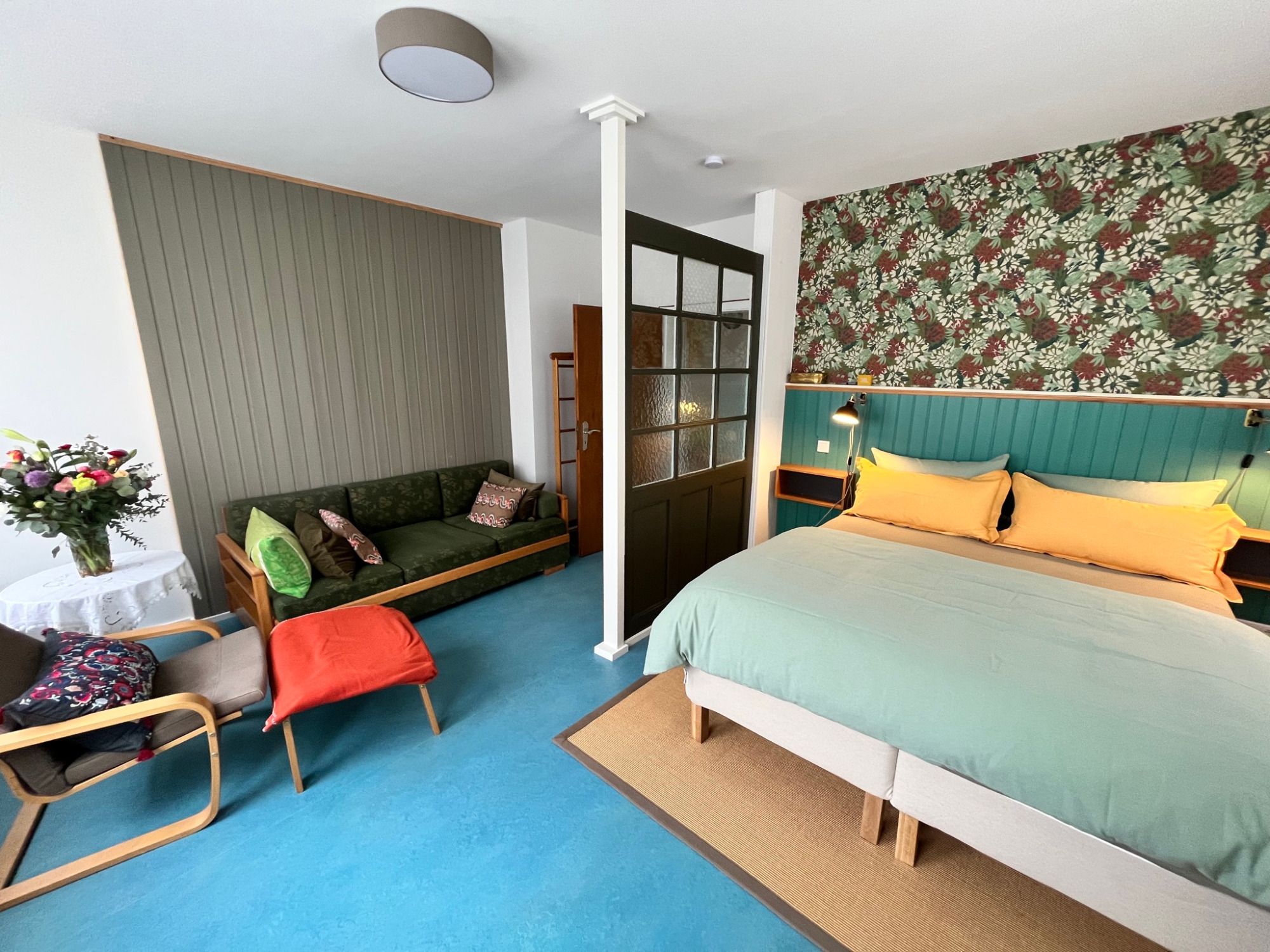 Eine Ferienwohnung wie sie uns selbst gefallen würde - nach diesem Motto haben wir das Appartement Sandsteig 1 gestaltet. Harmonische Farben, ein Hauch Vintage und eine hochwertige Ausstattung machen diese Wohnung zu einem Ort, an dem Sie sich wohlfühlen und entspannen können. Voll ausgestattete Wohnküche mit Geschirrspülmaschine, Waschtrockner, Herd und Kühlschrank mit Eisfach. Großer Wohn-Schlafraum mit Sofa und gemütlichem Sessel. Helles, schönes Badezimmer mit begehbarer Dusche. Geräumiger Gang und eigener Eingang.